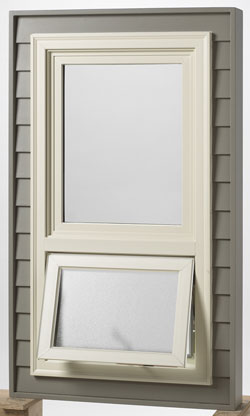 - Top‑hinged sash opens outward from the bottom